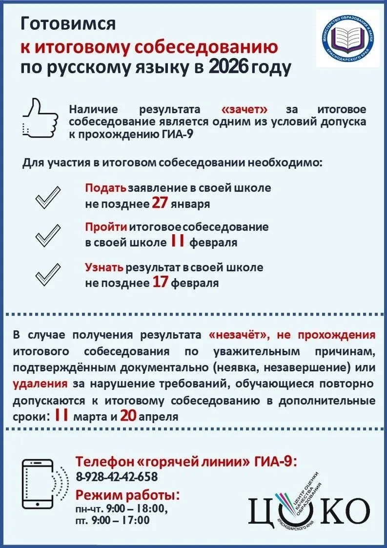 Итоговое собеседование проводится 11 февраля 2026 года.
